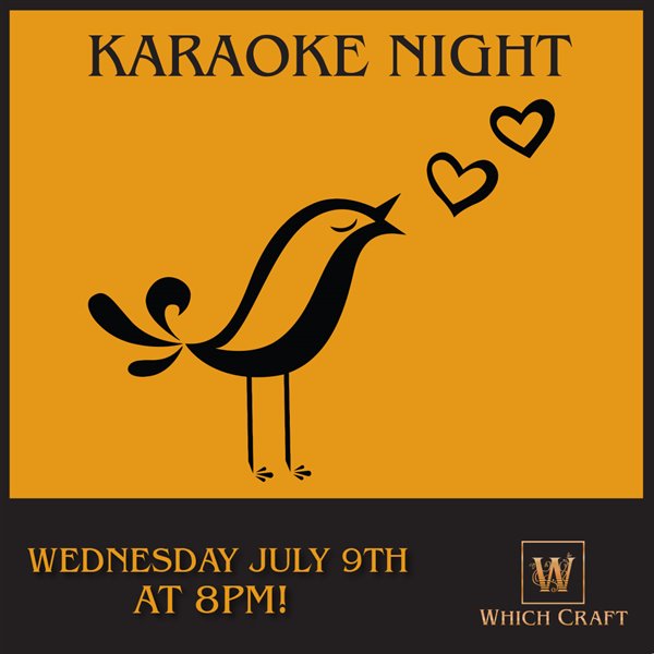 Wednesday KaraokeWhen: Wednesday July 9th, @ 8pm Where: WHICH CRAFT - 91 Wyndham St N, Guelph Info: Sing your heart out at our karaoke night! Starts at 8pm!