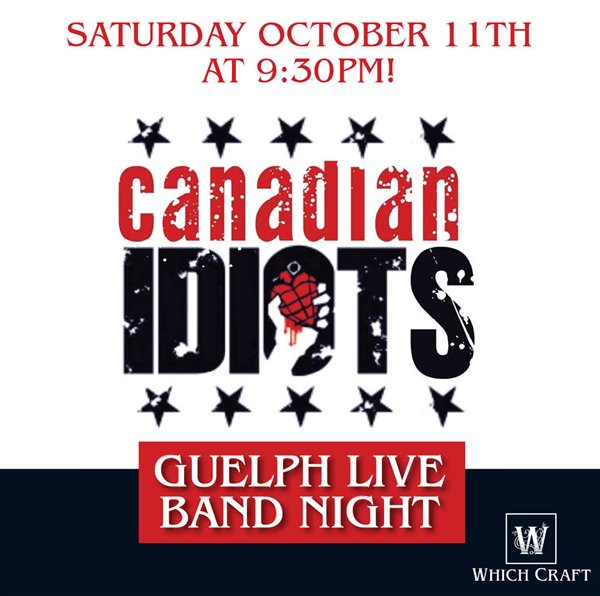 Canadian Idiots, 9:30pmWhen: Saturday, October 11th, 9:30pm Where: WHICH CRAFT - 91 Wyndham St N, Guelph Info: Canadian Idiots (9:30pm-1am)