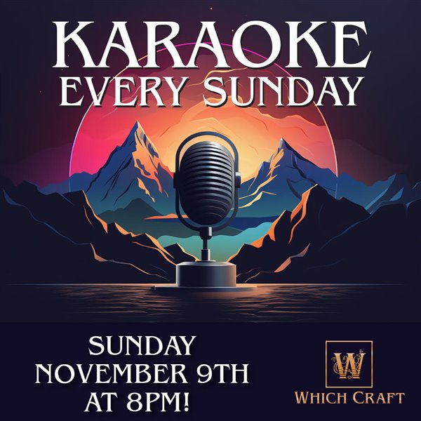 Sunday KaraokeWhen: Sunday Nov 9th, @ 8pm Where: WHICH CRAFT - 91 Wyndham St N, Guelph Info: Sing Your Weekly Frustrations Away! - Starts @ 8pm