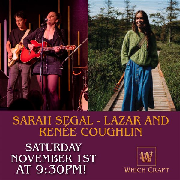 Sarah Segal-Lazar & Renée Coughlin 9:30pmWhen: Saturday Nov 1st 9:30pm Where: WHICH CRAFT - 91 Wyndham St N, Guelph Info: Sarah Segal-Lazar 9:30pm-1am
